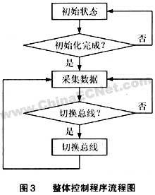 乒乓缓存控制器程序可采用Verilog HDL编写,并可在Modelsim下实现逻辑仿真,仿真程序包括3部分:一是处于TOP的主体程序,用于控制其他各个部分程序的运行;二是视频图像采集程序,用于从SAA7113获得数据图像数据并保存到SRAM中,三是乒乓缓存控制器,用于实现对SRAM数据读写的切换,限于篇幅,这是只列出整体控制过程流程图,见图3。